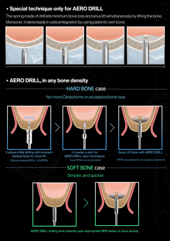 • Diverse proceduri clinice care necesită un set complet și versatil de instrumente pentru sinus lift.